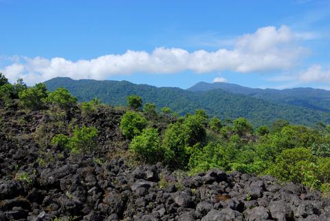 While exploring the park you will see plant life which includes guayabo de monte, laurel, cirri, various species of palms, orchids, heliconias, ferns, strangler figs, bromeliads, and many others. A popular hike is to pass through the park's tropical rainforest to old lava beds and then climb the Chato Volcano (Volcan Chato). Its extinct crater houses a water filled lagoon with a liberating view standing at 3,609 ft (1,100 m) on top of Arenal's little sibling.