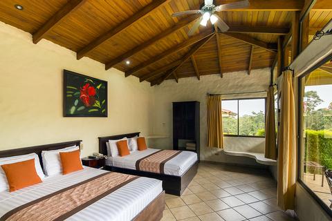 The comfortable and well appointed Arenal Volcano Inn offers beautiful rooms, all with an amazing view of the volcano. Alongside spectacular views, guests can lounge in one of the swimming pools or soak in the thermo regulated Jacuzzi. The restaurant, Que Rico, specializes in International cuisine and is open for breakfast, lunch, and dinner with space for up to 80 people. They also offer one of the best wood oven pizzas o the town.
