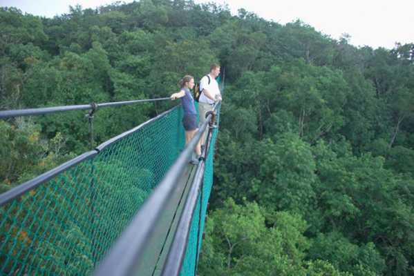 Spread across 3.5 square miles (9 sq km) in an area just outside Flores and Santa Elena, the Ixpanpajul Natural Park offers travelers aerial views of the forest canopy. The park is conveniently located along the road to Guatemala City.